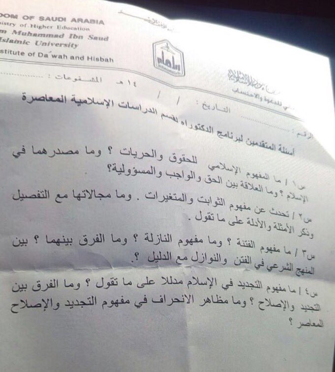 ملتقى جامعة الإمام Auf Twitter نماذج من أسئلة برنامج الدكتوراه قسم الدراسات الإسلامية المعاصرة في جامعة الامام ولا تنسو من صورها ووالديه من دعاكم Https T Co Gxogkudb11